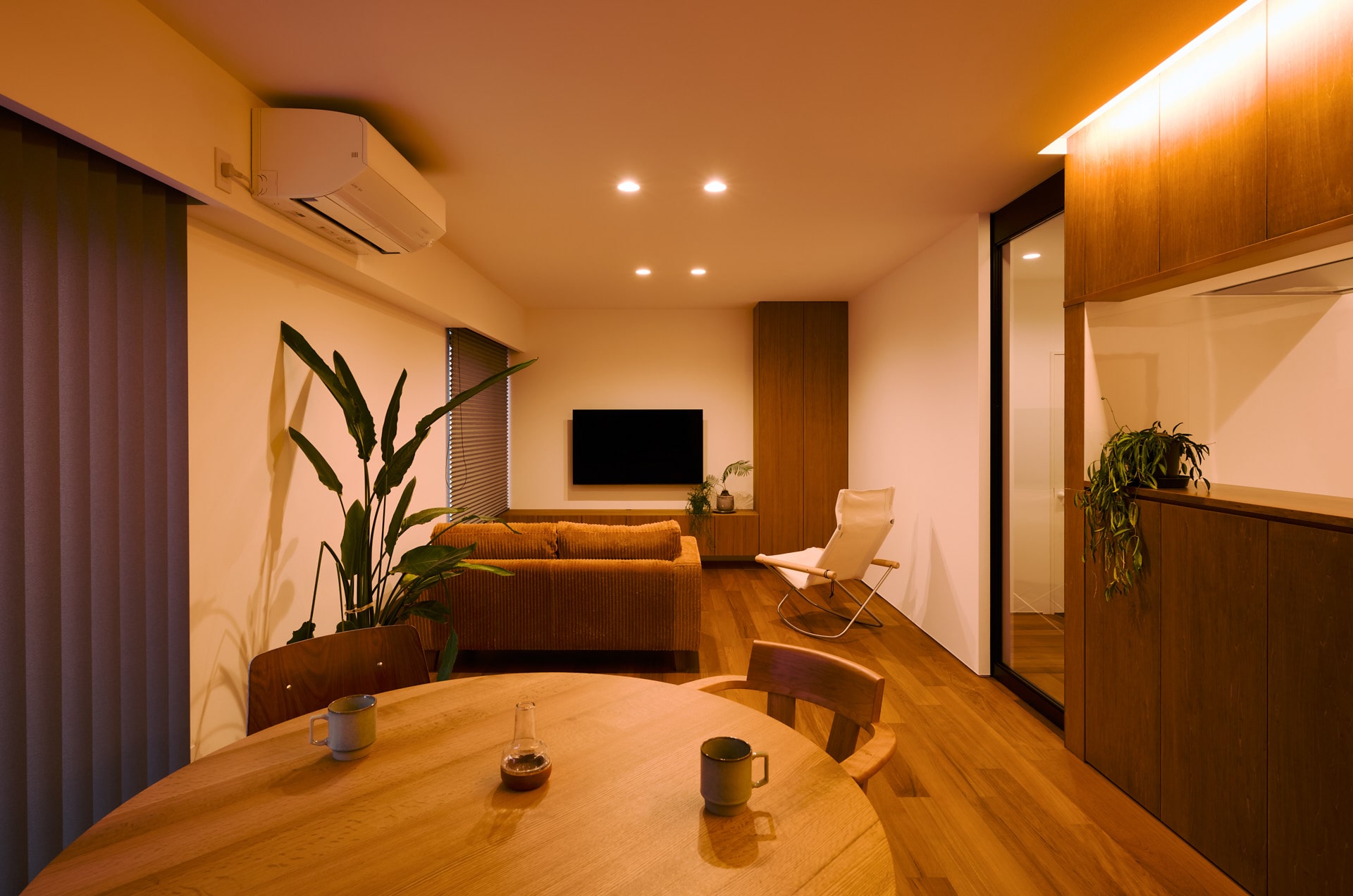 ミッドセンチュリー家具が映える回遊動線の二世帯住宅